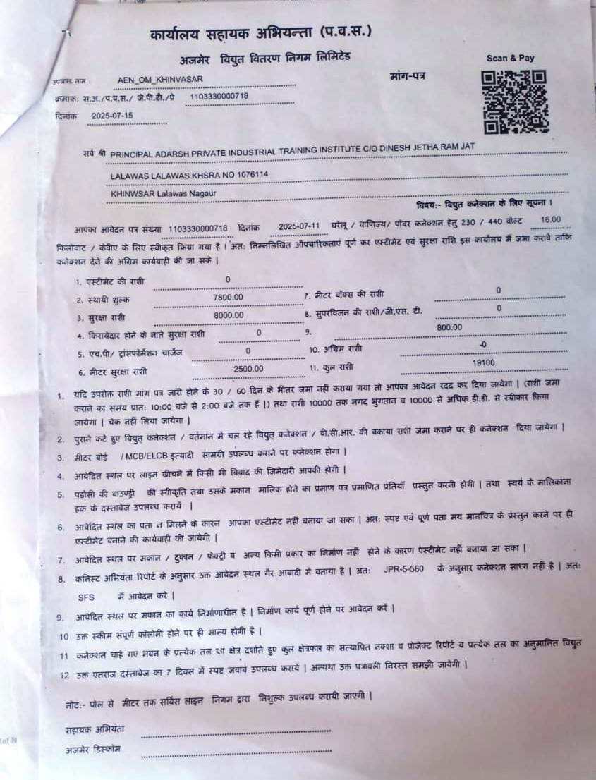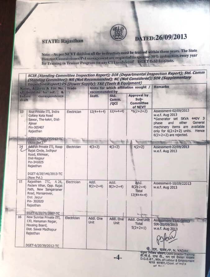 | Name of the Institute | Adarsh Pvt ITI, Khimsar |